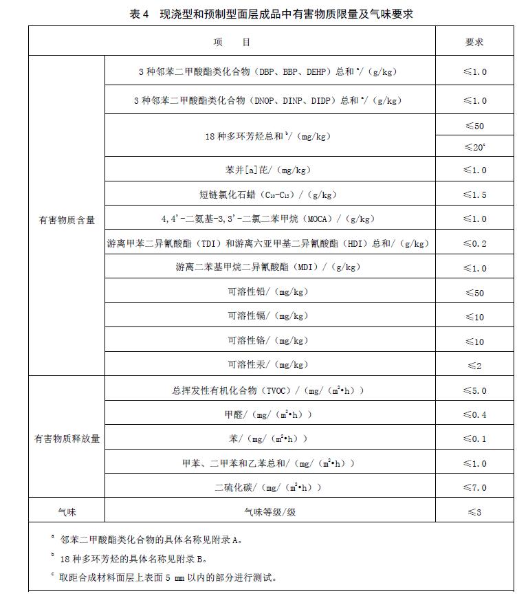 11、增加了合成材料面層運動場地成品和原料中有害物質(zhì)限量要求和氣味要求及試驗方法