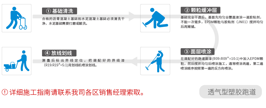 “BSMC柏勝”經(jīng)典透氣型跑道由膠粘劑(JN01)混合環(huán)保橡膠顆粒作為底層、面層由EPDM橡膠顆粒與跑道面材(R09)混合噴涂而成,它成型后呈孔隙結(jié)構(gòu),透氣透水,能在雨后或沖洗場(chǎng)地后,立即投入訓(xùn)練和比賽。